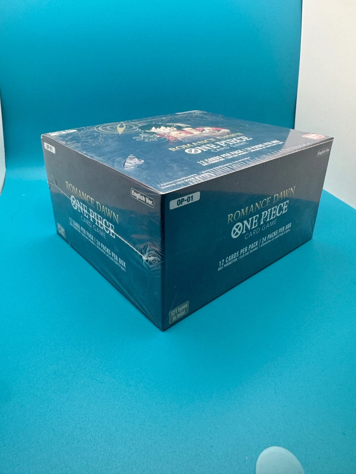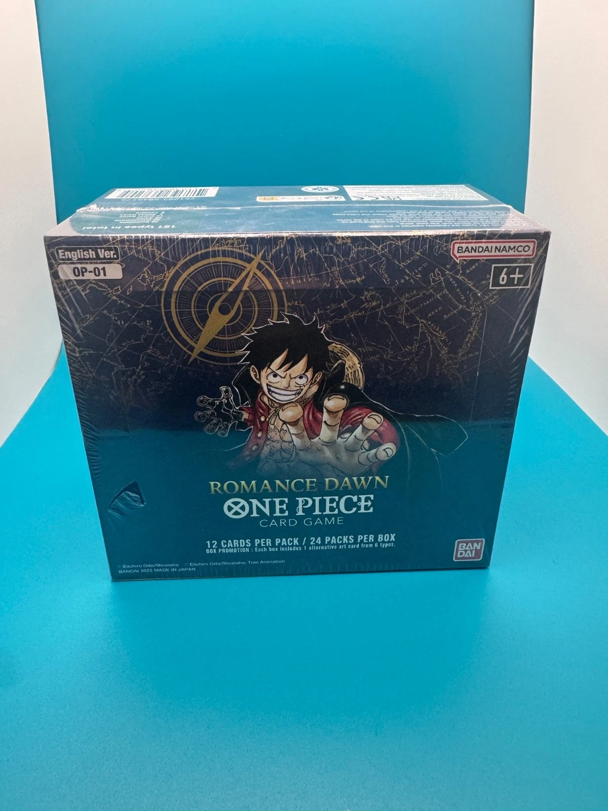 A rare Romance Dawn Booster Box – Blue Bottom (OP01) is One Piece’s very first TCG release and contains a total of 24 Romance Dawn Booster Packs.